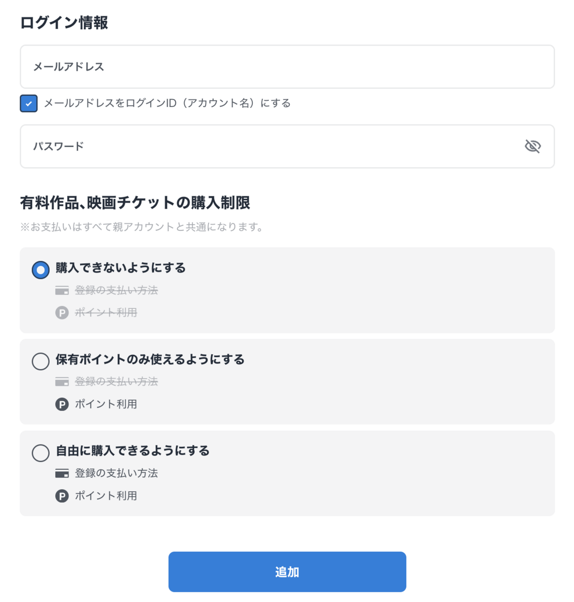 ファミリーアカウント作成方法