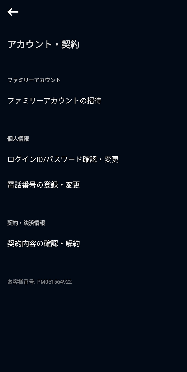 アカウント・契約のページに行くと一番上にある"ファミリーアカウントの招待"をタップします。