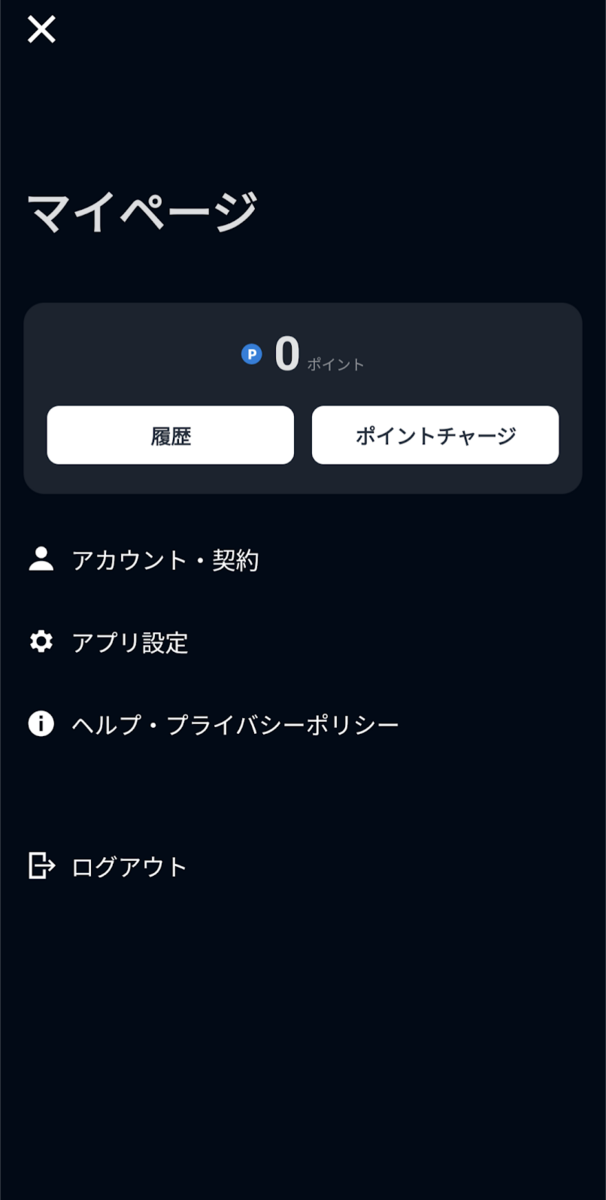 ログアウトはアプリ画面トップの右上からマイページ